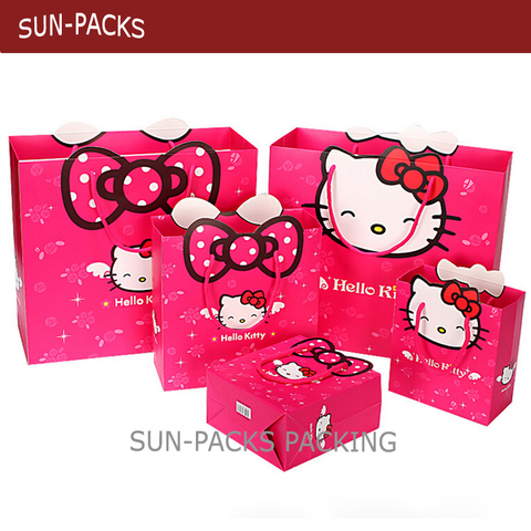 Bolsas de regalo de papel para fiesta de cumpleaños, de lujo, con asa de cinta y estampado de dibujos animados, color rosa