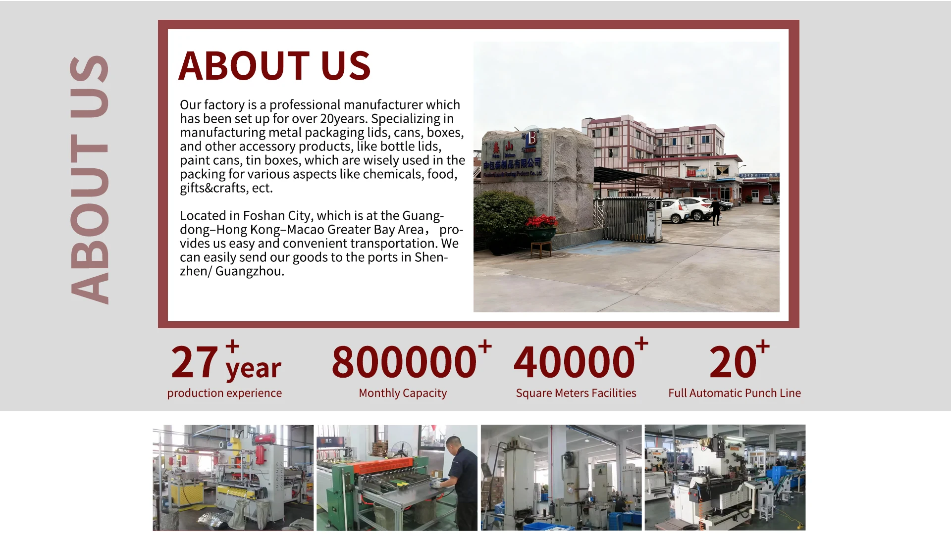 Productos principales:Tapa de vela, lata de pintura, lata, caja de embalaje, Cubo de metal